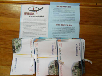 国庆黄金周作为一年一度的长假,是群众外出访友、朋友小聚等好日子,同时也是酒后驾驶违法行为的高发期。为了进一步加强国庆期间的反酒后宣传,减少辖区酒后驾驶违法行为的发生,近日,市公安局交管大队与辖区汽车销售商合作,共同印制了10000份包含酒后驾驶倡议书、酒后驾驶处罚规定、酒后驾驶的界定标准等“酒后禁驾”宣传内容的商业信函在节前寄给辖区客运、货运企业及企、事业、机关单位的负责人、驾驶员及普通群众,希望通过这份特殊的酒后“宣传单”,让他们再一次深入了解酒后驾驶的危害,绷紧交通安全这根弦,自觉遵守交通法规,远离酒后驾驶等交通违法行为,为新中国成立60周年,营造一个有序、畅通、安全、和谐的交通环境。