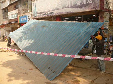 3月7日上午,,在陈许忠镇长的正确指挥,全镇干部的协调落实、居民群众的积极配合下,贡川镇水东路环境综合整治开始奋力突“违”,施工队伍顺利进场拆除违章搭建的彩钢棚及雨篷,迈出了拆违工程的第一步。