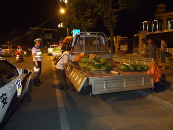 随着夏季的到来,夜晚外出纳凉的群众逐渐增多,我市城区一些经营排挡、水果的商贩为了招揽生意,擅自将摊点摆设到人行道上,甚至还有商贩将摊点摆设到非机动车道上。这种占道经营做法不仅影响到正常的交通秩序,还存在交通安全隐患。