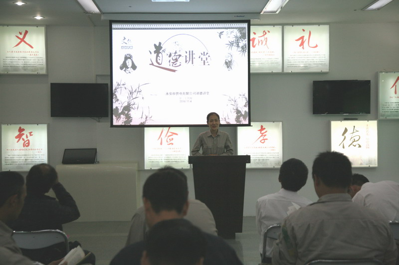 2014年11月4日下午,永安市供电公司举行以“学身边典型,点滴小事做起来”为主题的道德讲堂活动,通过“身边人讲身边事、身边人讲自己事、身边事教身边人”的方式,弘扬传统美德,传播凡人善举,倡导修身律己,营造“积小德为大德,积小善为大善”的良好风气,构建崇德向善的企业氛围。