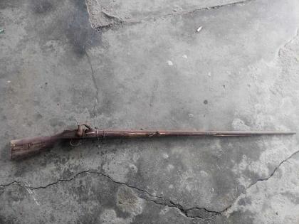 截至目前,派出所共收到辖区群众主动上缴非法改制射钉枪1枝、鸟铳1把。
