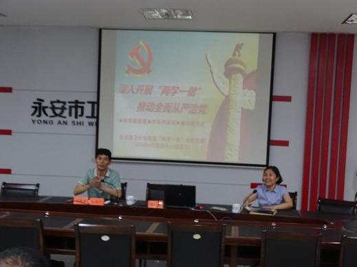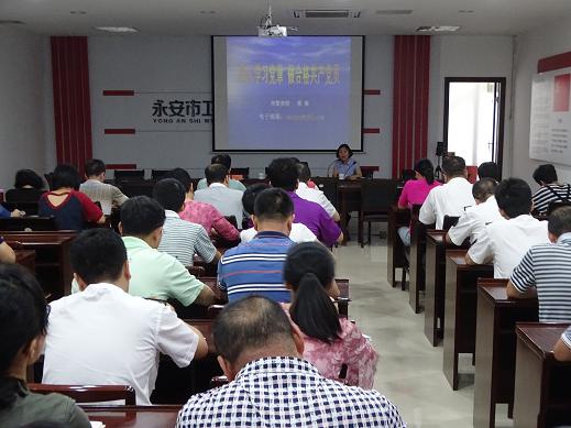 6月17日,永安市卫计局在会议室举办“深入学习党章•做合格共产党员”主题“两学一做”学习教育专题讲座,特邀市委党校高级讲师、教研处主任周葵主讲。局机关党政领导班子成员以及局机关支部全体党员,市立医院党总支书记、支委及下属各支部书记、其余各党支部书记、支委共约60人参加了专题讲座。