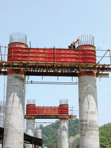控制性工程、全长577米的泉三高速公路西洋5号大桥,目前进入大桥下部施工。自动工以来,承建单位中铁十四局上足设备和人力,抓住晴好天气加班加点,现已完成墩柱施工18根,大桥墩柱工程力争于今年11月完工。图为8月2日大桥墩柱施工场景。