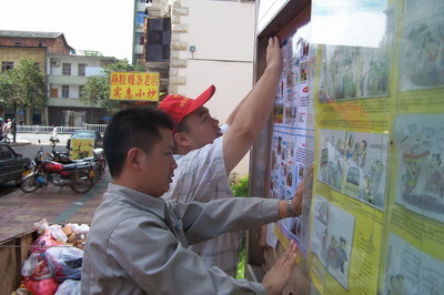 | 永安供电局党团员粘贴防震、安全用电挂图 |