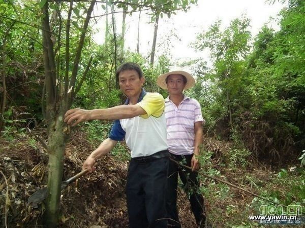 (采访石峰村党员管树本:“20多年前,我和我家里人在这片山上造林,当时挖穴的时候,挖出大量的子弹壳,是当年红军留下的。”)