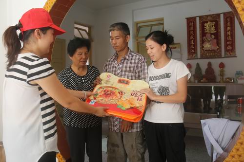 中秋临近,永安市燕西北塔社区计生协会、挂包计生户志愿者与街道计生办、计生协会干部一同深入到社区开展“生育关怀迎中秋送温暖”活动。此次活动共对16户计生特殊家庭进行上门走访慰问,其中对重度残疾独生子女及失独家庭3户特殊家庭送上“爱心礼包”,包括一盒充满亲情的月饼、一张价值300元“爱心服务卡”、一张价值600元的“体检卡”。另外13户计生困难户送上满载爱心的月饼一盒,同时给每一个家庭送上最真挚的节日问候,预祝他们过一个愉快祥和的中秋佳节。生育关怀迎中秋送温暖活动的开展让这些计生特殊家庭切实感受到政府和社会大家庭的温暖。