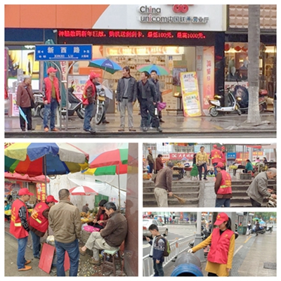 细雨绵绵,志愿者们以温暖之心,用实际行动感染市民,从自身做起,重视城市文明,自觉维护城市环境卫生。