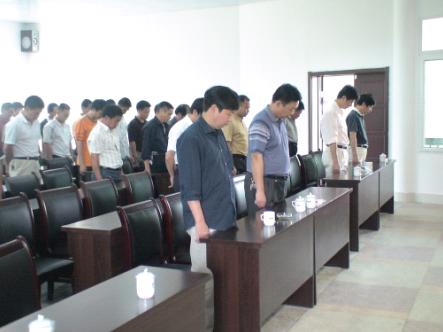 图为安砂镇全体干部为汶川大地震的遇难同胞默哀 |
